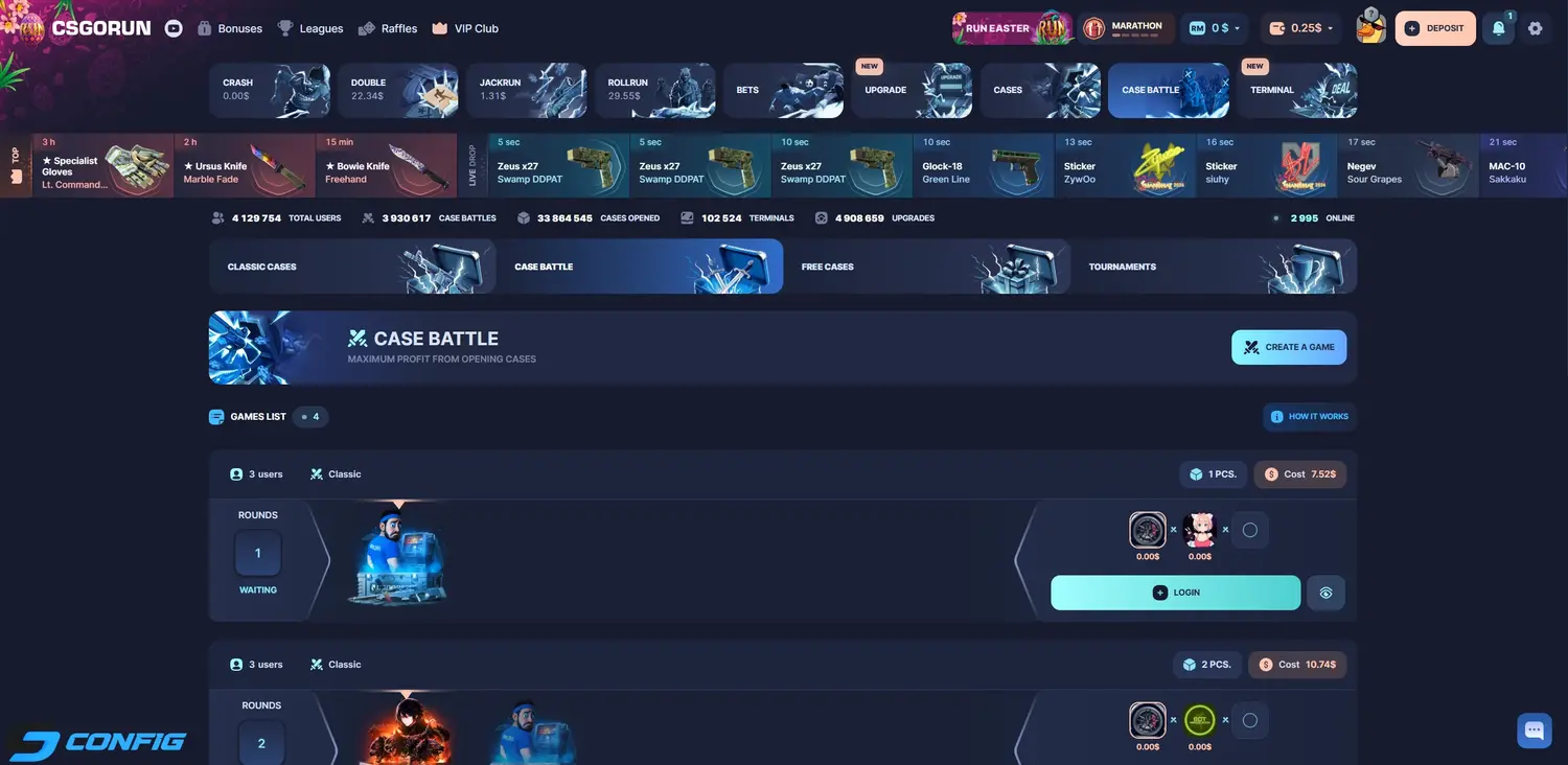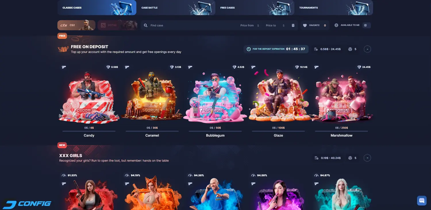 CSGORUN is a CS2 case opening and gambling platform that offers a wide selection of game modes and interactive features. The site allows users to open cases, upgrade skins, place bets, and participate in competitive formats, making it a versatile platform for CS2 players.