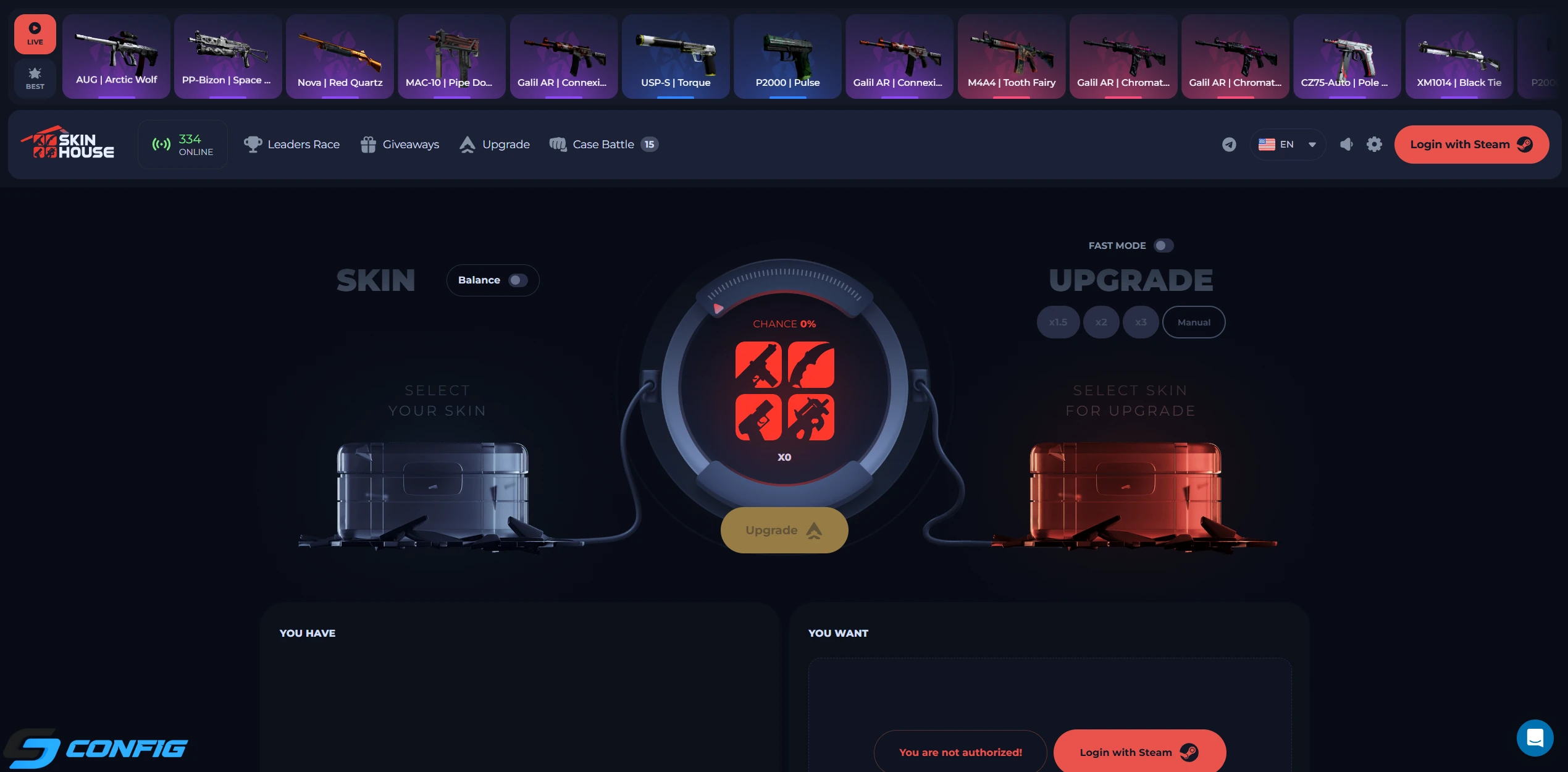 SkinHouse is a straightforward CS2 platform offering cases, upgrades, and bonus features. It is suitable for users who prefer simple navigation and fast gameplay.